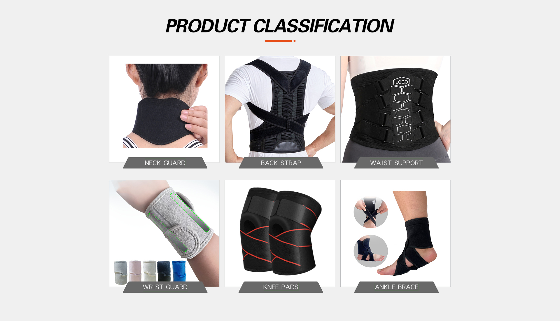 Productos principales:Soporte de cintura, rótula, protector de cuello, cinturón correcto